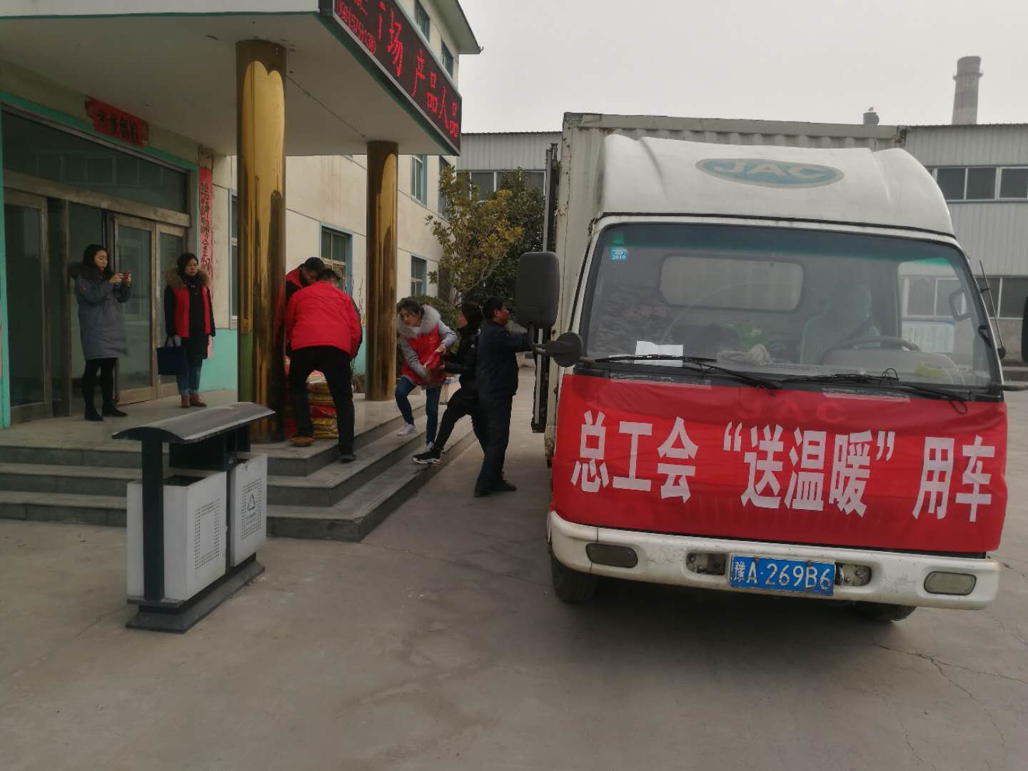 2019新春佳節(jié)到來之際,市總工會“送溫暖”小組一行帶著米、面、油等慰問品冒著寒風來到我公司對全體職工表示慰問。公司上下對黨和政府以及市總工會的關(guān)懷表示深深的感謝,我們定不辱厚愛,勵志前行,以更優(yōu)異的成績回報社會!